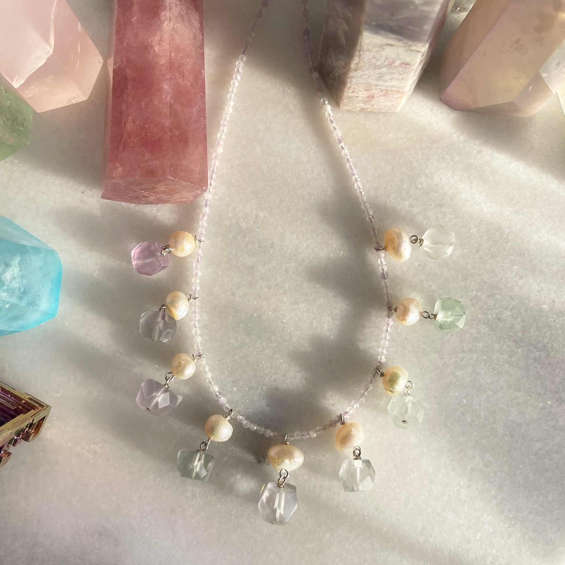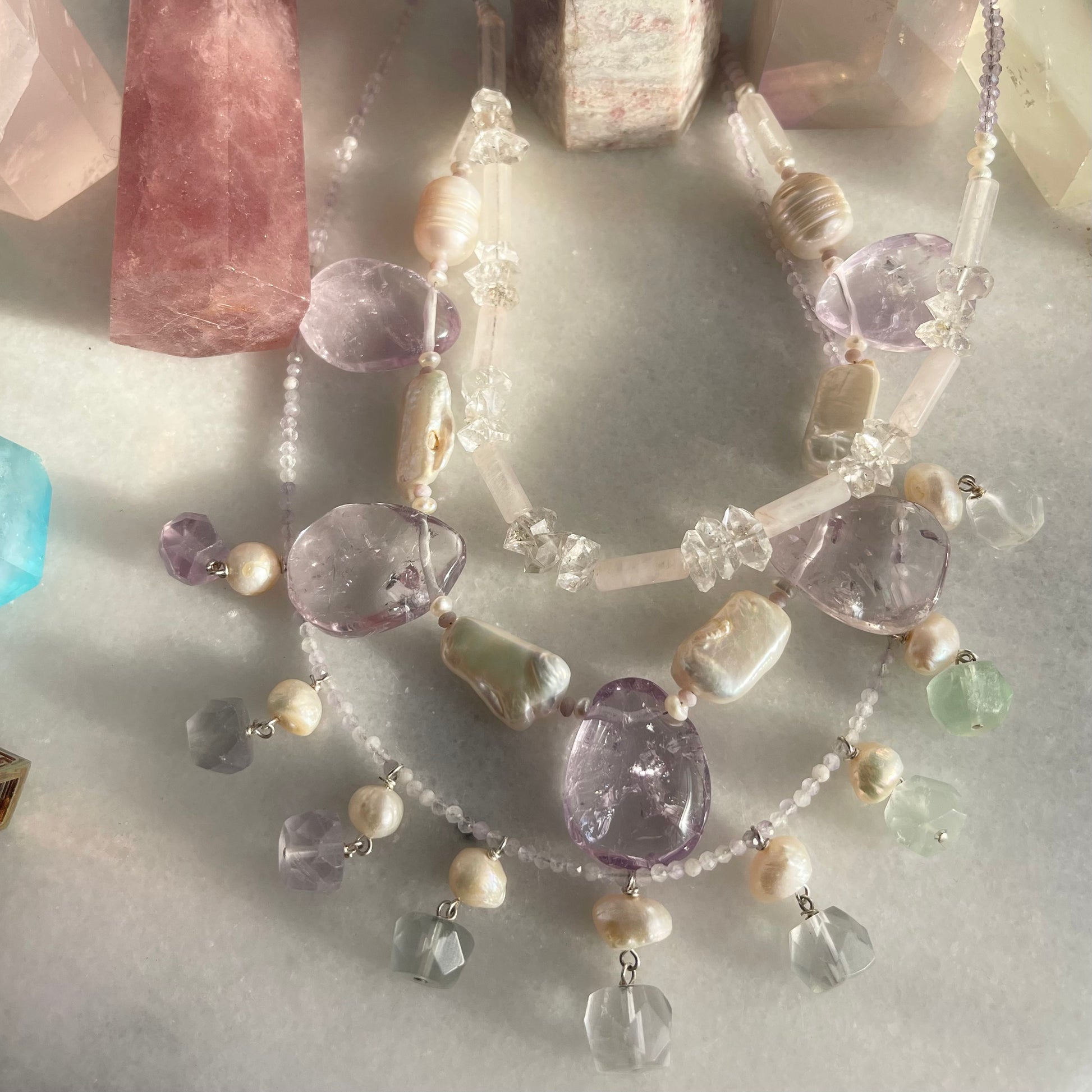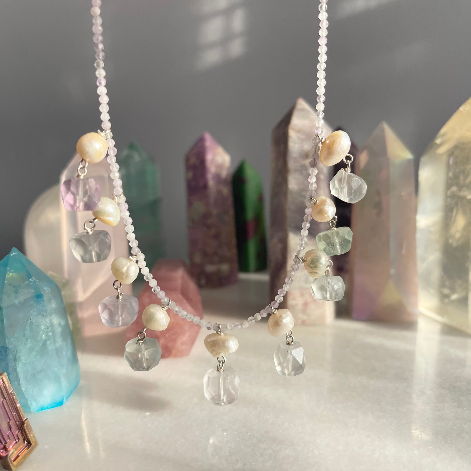 Fluorite + Pearl + Amethyst Beaded Necklace.