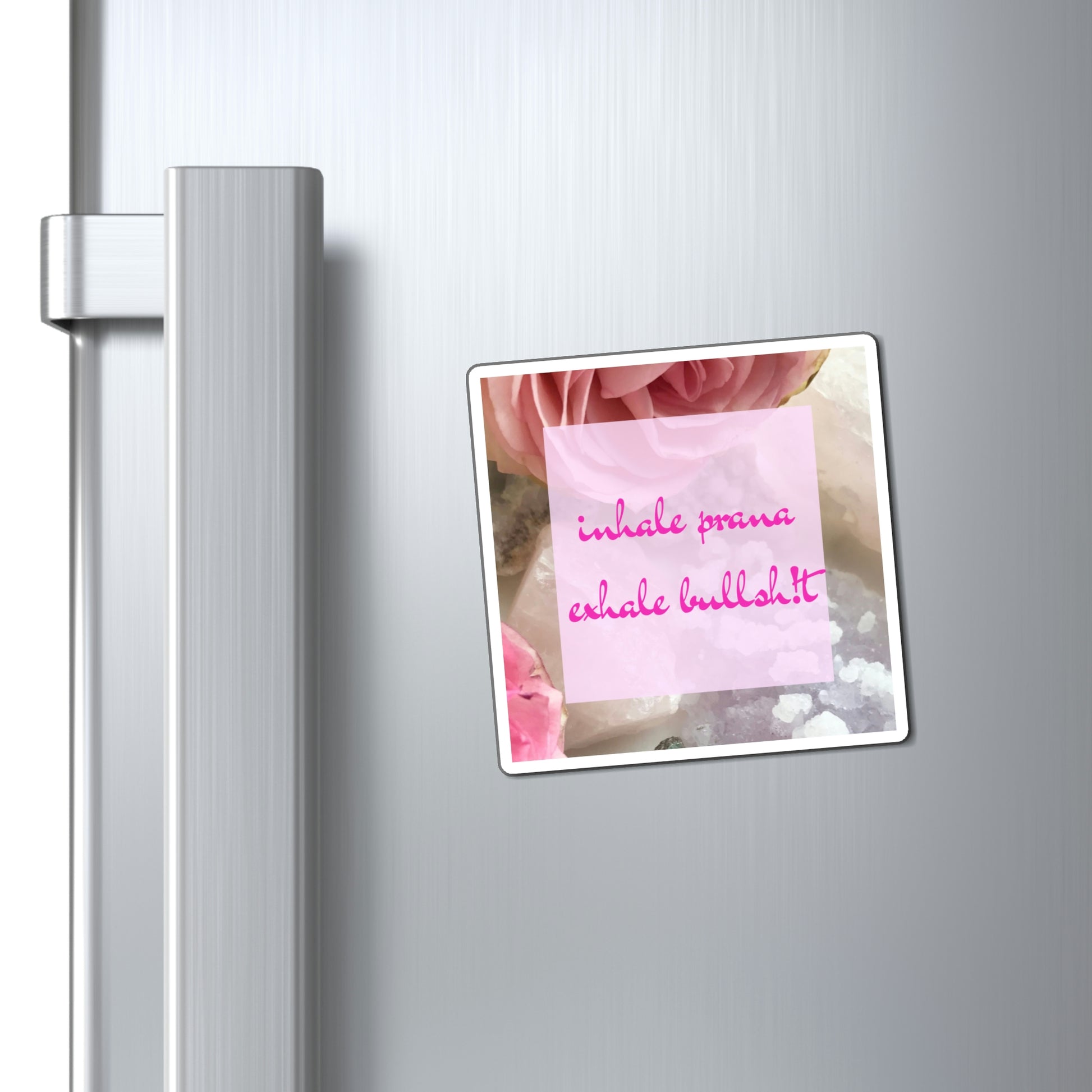 'inhale prana. exhale bullsh!t' Floral + Amethyst + Rose Quartz Imagery Magnet. A reminder to inhale the good sh!t & exhale the bad sh!t.