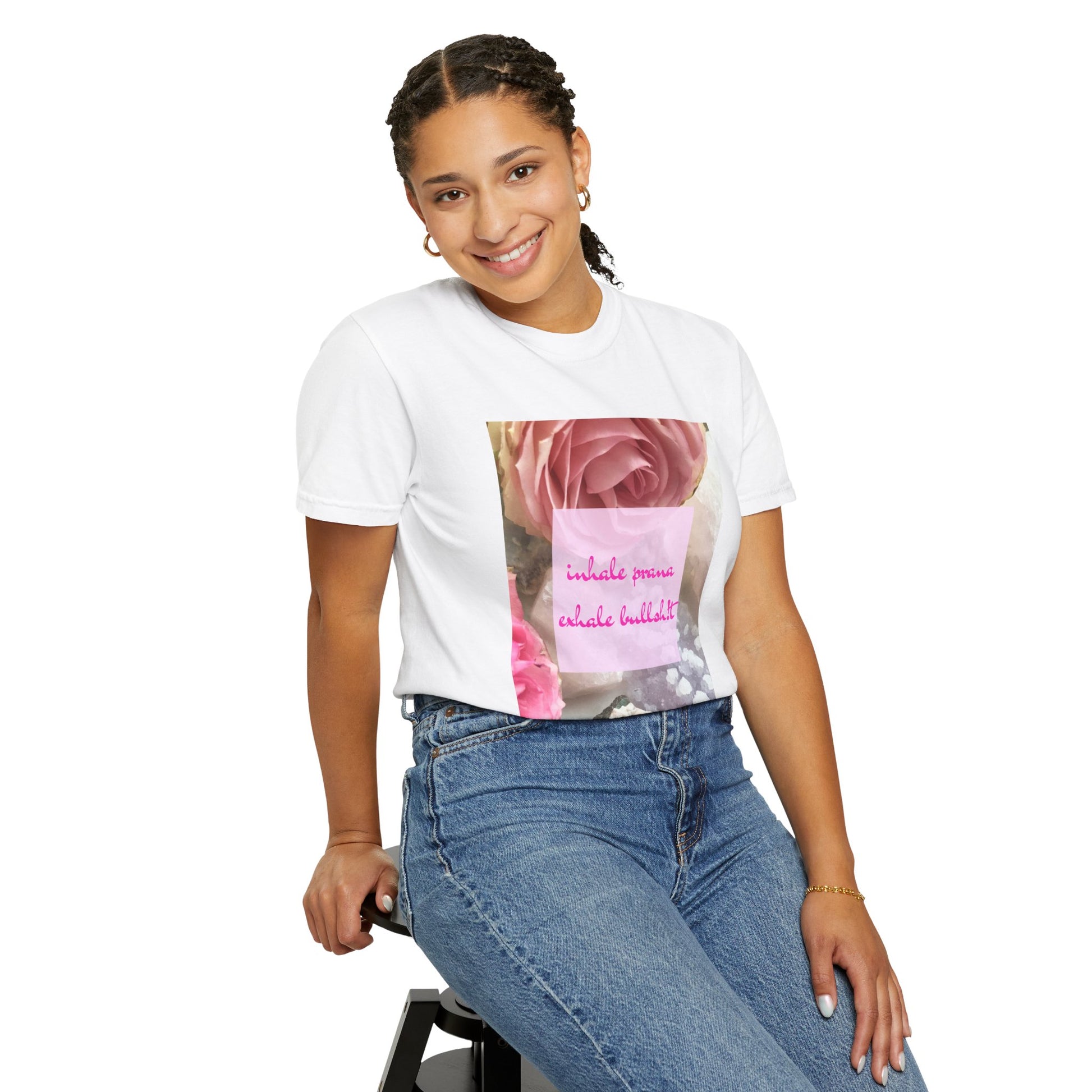 'Inhale Prana | Exhale Bullshit' Crystal & Floral T-shirt